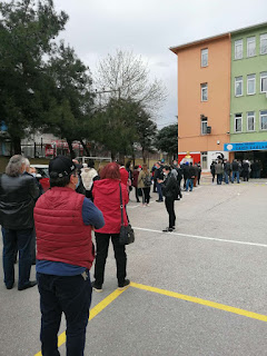 На снимката: Изселници на опашка за гласуване в едно от училищата в Бурса, 4 април, 2021. Снимка: 24rodopi.com